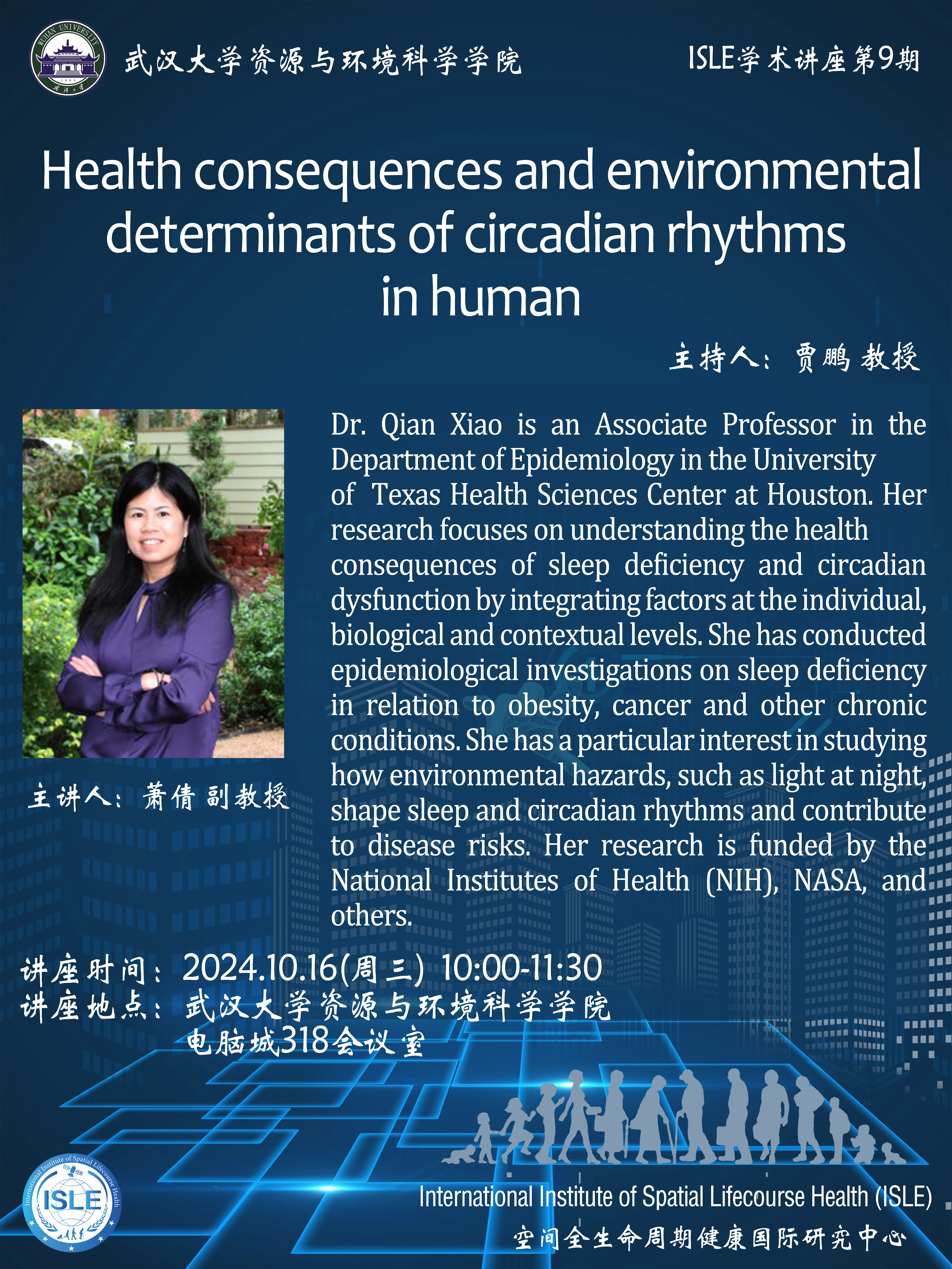 【学术讲座】10月16日上午萧倩副教授 Health consequences and environmental determinants of circadian rhythms in human