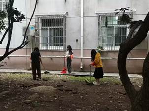 清扫14舍院前的垃圾