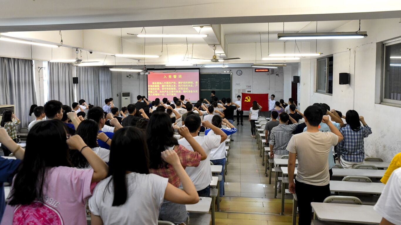 大会开始,在冯丹副书记主持下,首先进行了预备党员入党宣誓。由雷起宏副书记领誓,123名预备党员面向党旗、举起右拳庄严宣誓,与会党员重温入党誓词。党旗鲜红,誓言铿锵,大家郑重许下铮铮誓言!