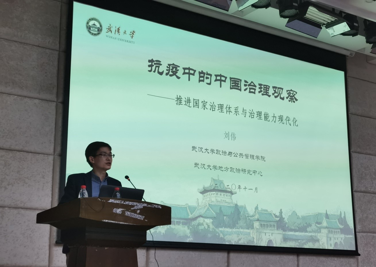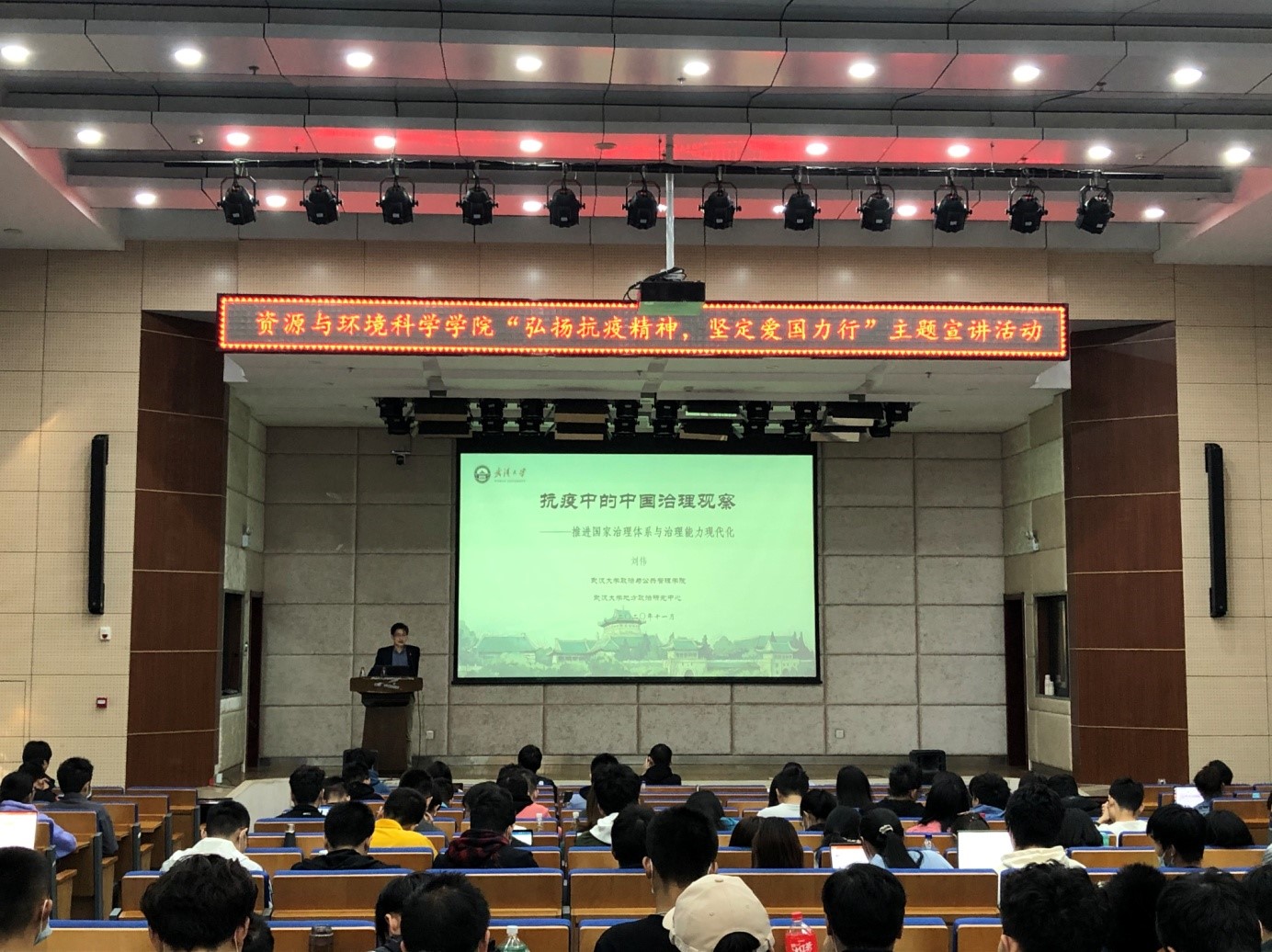 政治与公共管理学院副院长刘伟教授来院做报告,刘伟教授以《抗疫中的中国治理观察——推进国家治理体系与治理能力现代化》为题,从他所研究的方向视角,为资环院的师生诠释了伟大的抗疫精神。刘伟教授以中外疫情应对方式为切入点,通过分析中国治理疫情的五个阶段,剖析我国应对疫情背后的治理逻辑。他强调,“疫情防控要坚持全国一盘棋”,是习近平总书记对夺取疫情防控阻击战全面胜利的科学指引和行动指南。面对突如其来的疫情,要铸牢中华民族共同体意识,形成中华民族面对困难灾难共克时艰、推动发展的内生动力,这是新形势下我国推进国家治理体系和治理能力现代化的重要内容。