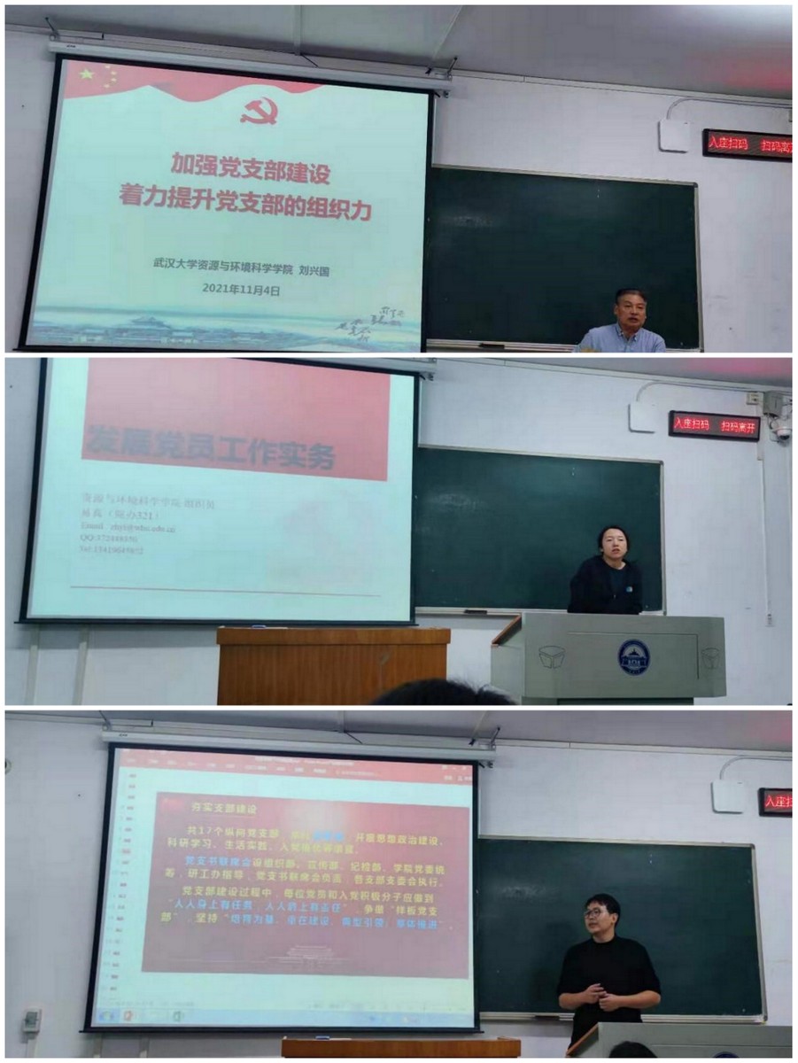 在集中授课中,学院党委书记刘兴国以“加强党支部建设 着力提升党支部组织力”为题,对学生党支部及支委会的职责定位、主要任务、工作方法等作了深入讲解;组织员易真老师为大家讲解了党员发展工作要求、流程等;辅导员李韩老师做了“加强特色党支部建设”的专题报告。