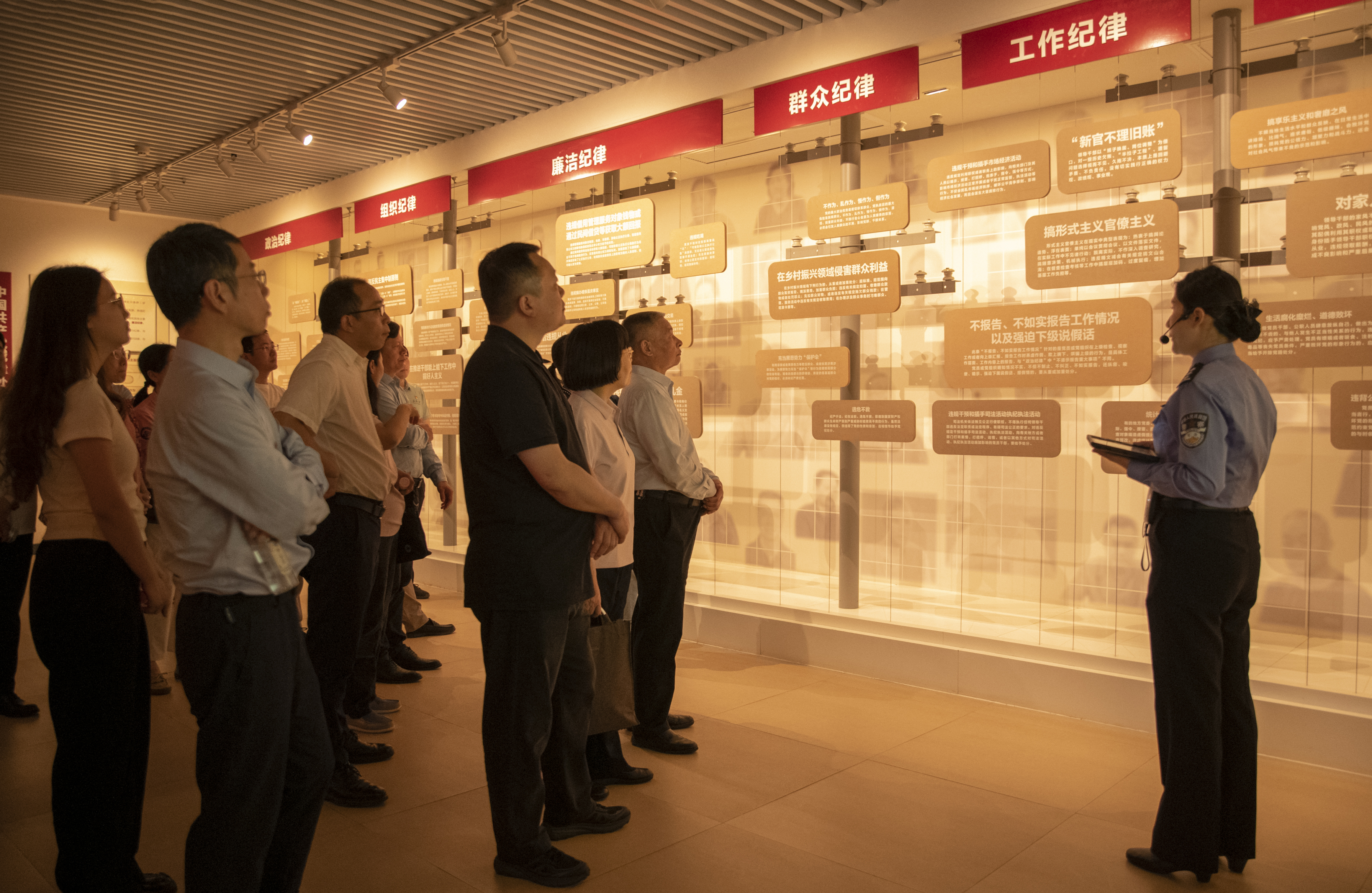 4月16日下午,读书班前往湖北省党风廉政警示教育基地进行了参观见学。在基地讲解员的带领和讲解下,参观了“赶考之路、廉政之规、覆车之鉴、湖北之为”四个专题展厅,通过图文视频、专题短片、答题互动、场景模拟等形式,深入了解中国共产党开展党风廉政建设和反腐败斗争的发展历程,警示党员干部时刻自警自重自省,始终保持清醒清正清白。