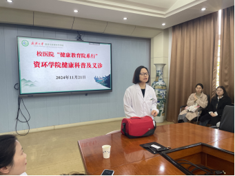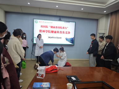 为深入践行以人民为中心的思想,培养师生健康意识,提高师生健康素养,校医院从本学期开始,开展“健康教育院系行”活动。校医院信息学部团队负责联系资环学院等六个单位,把服务送到基层。2024年11月21日下午顺利开启资环院首场健康科普及义诊活动。