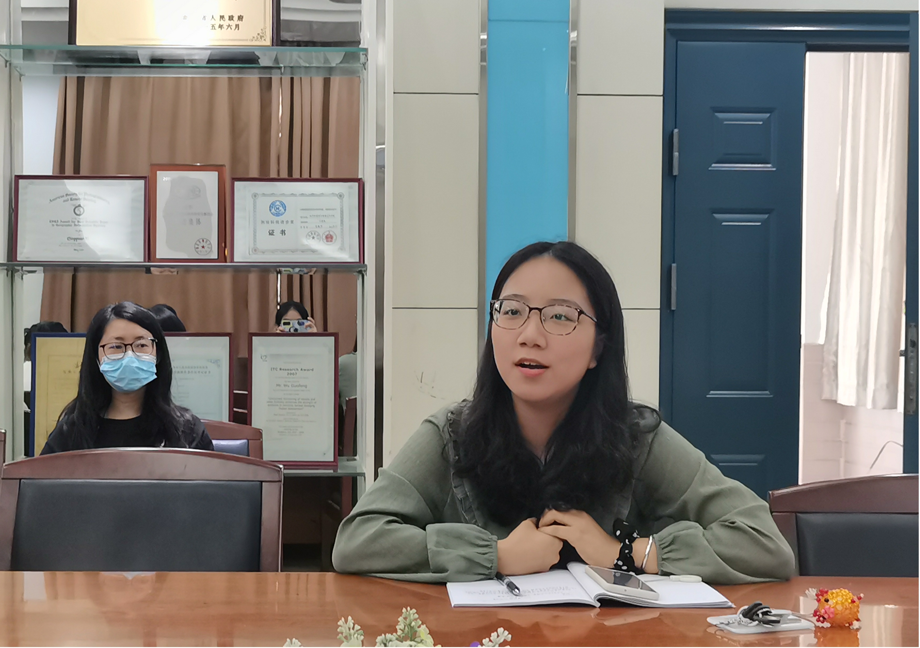 会议第二项,由新一届支部委员会成员:党支部书记苏会钰、党支部副书记刘方恬、纪律委员曹诗翊、组织委员吴忆、宣传委员胡慧向支部同志汇报任职情况和工作职责,便于同志们在遇到问题和困难时,能及时高效地进行反馈、得到帮助。