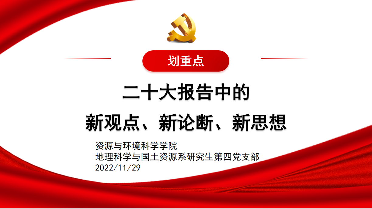 【支部党建】地理科学与国土资源系研究生第四党支部开展“二十大报告中的新观点、新论断、新思想”主题教育