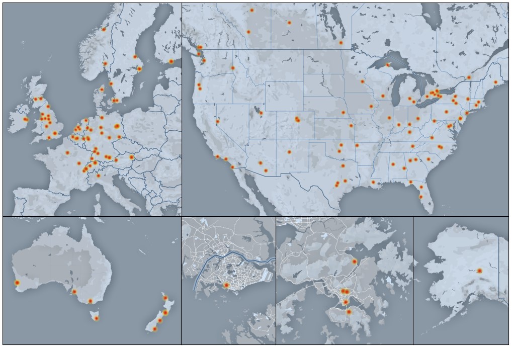 《指南》采用众包方式,邀请了超过100名来自世界各地GIS专业名校的学生、校友和青年学者共同撰写,围绕院校介绍、学科特色、培养方案和导师方向提供第一手信息。自2019年发起以来,项目从初期覆盖的30余所学校逐步扩展到横跨北美洲、欧洲、亚洲、大洋洲的161所学校,院校数量及内容质量不断提升。《指南》目前覆盖北美洲79所院校(美国64所,加拿大15所),亚洲6所院校(中国香港5所,新加坡1所),大洋洲10所院校(澳大利亚5所,新西兰5所)以及欧洲66所院校(德国20所,英国13所,瑞士6所,荷兰、瑞典各5所,比利时、奥地利各3所,法国、爱尔兰、挪威、芬兰、丹麦各2所,意大利1所)。