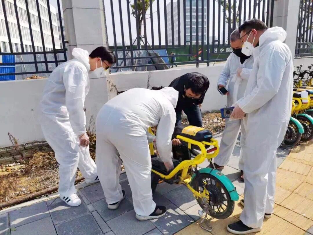 对于这批定点投放车辆,“芒果电单车”进行集中维护和后台运营,每天都有专门的运维工作人员统一后台检测电量、及时更换电池,对车辆的车把手、坐垫、车架等消毒,与人接触的部位进行重点喷洒消毒。同时,“芒果电单车”要求所有运维工作人员每日测量体温,上岗前佩戴口罩,做到勤洗手、及时更换工作服,以专业的消毒工作保障车辆清洁和抗疫一线人员的骑行安全。