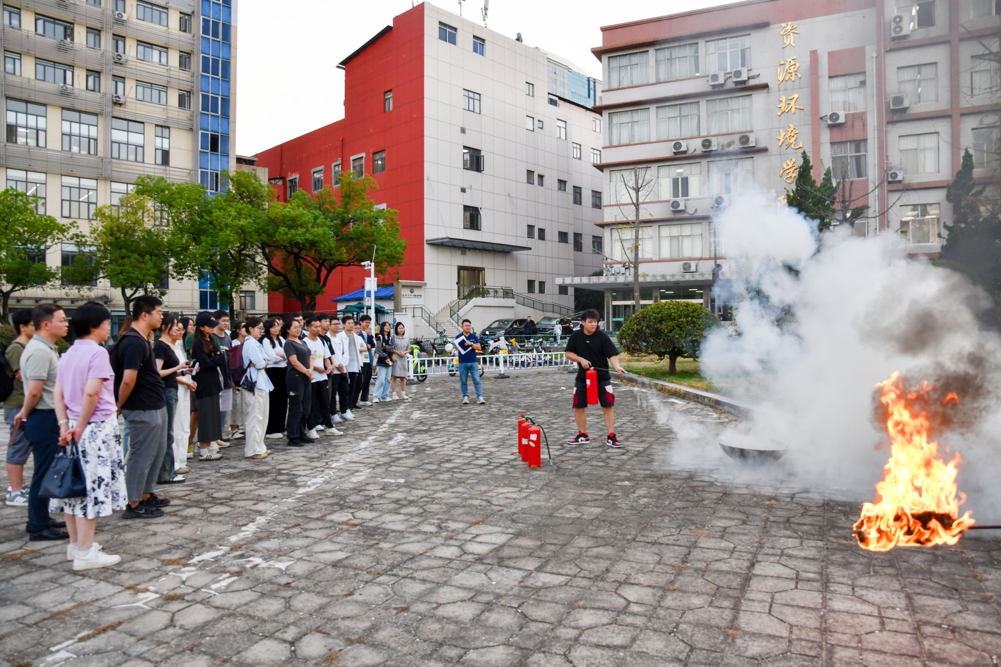 随后,在学校友谊广场上,邀请了学校保卫部三分部同志指导开展了消防实操演练,每位参训者均进行了干粉灭火的实践体验。