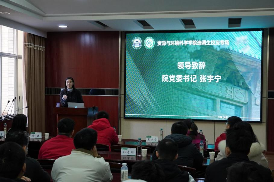 2025年优秀选调生校友交流会在学院220会议室顺利举行。从本院研究生毕业,来自全国多省份的六位优秀选调生校友返校,和在校生分享选调感悟。学院党委书记张宇宁老师、党委副书记马丽华老师、团委副书记梅菲老师和团委副书记仝德富老师出席此次交流会。资环学院有意向报考选调生的几十位研究生和本科生参加了这次交流会。会议由院研会职发部孙萌谦主持。