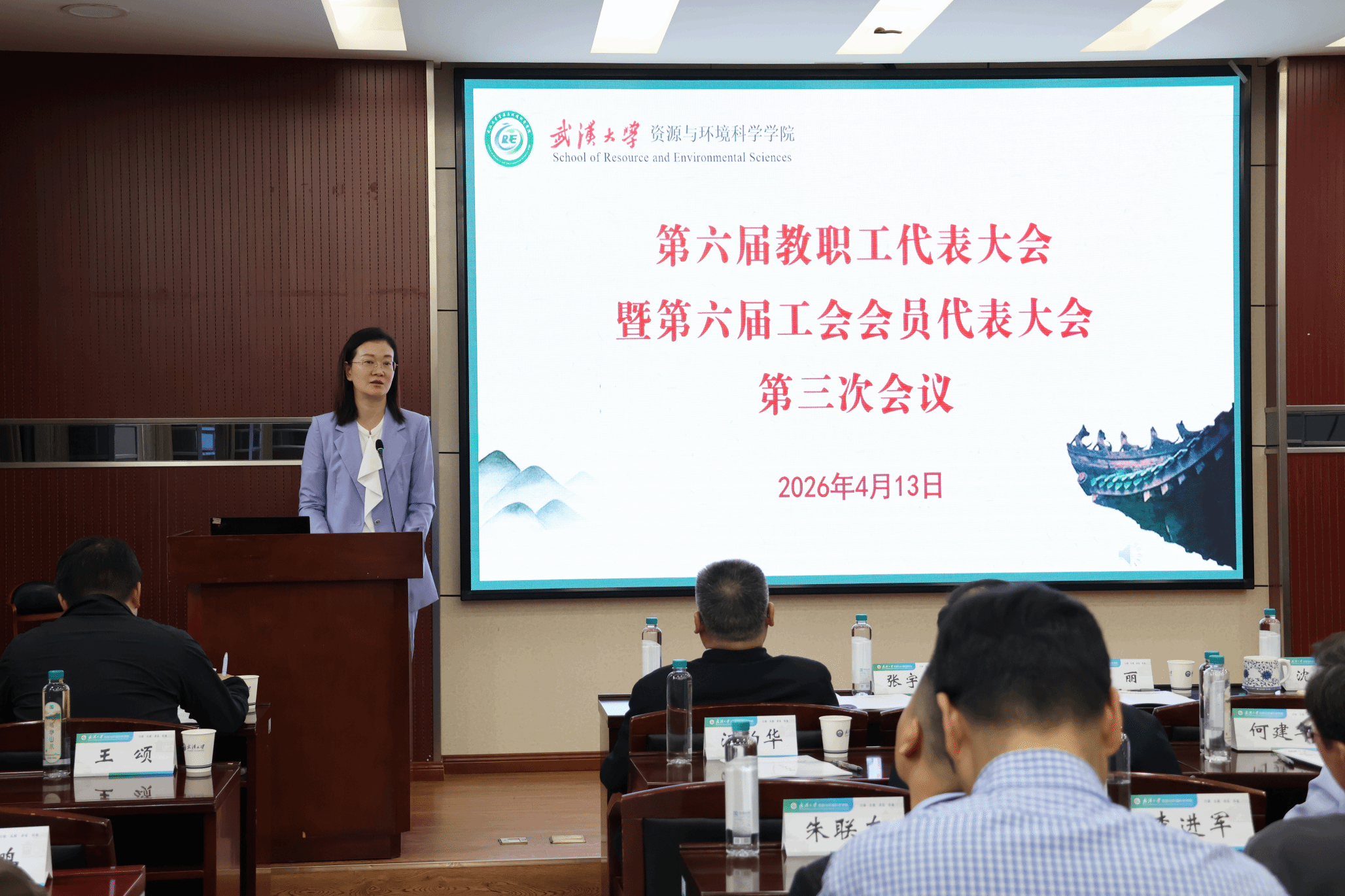 大会在庄严的国歌声中开幕。首先,校工会副主席黄丽致辞。她充分肯定了资环学院在2025年各项工作中取得的显著成绩,特别是对于学院“邓红兵劳模工作室”获评“湖北省劳模工匠创新工作室”,以及学院近几年来扎实推进工会工作给予了高度评价。她指出,院工会要在学院党委的领导下,继续履行好工会职能,切实做好教代会和工会的各项工作,团结动员全体教职工为实现学院高质量发展做出新的更大贡献。