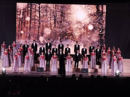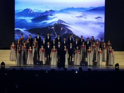 合唱团首先演唱了《我爱你,中国》。那优美的旋律线,大幅度地描绘了祖国的大好河山,赞美了祖国的宏伟壮大。合唱团的歌声舒展宽广,而又流畅活泼。听众们的的情感随着歌声一浪又一浪的跌宕起伏。歌声中那真挚而又热烈的爱国热情感染了每一个在场的人。