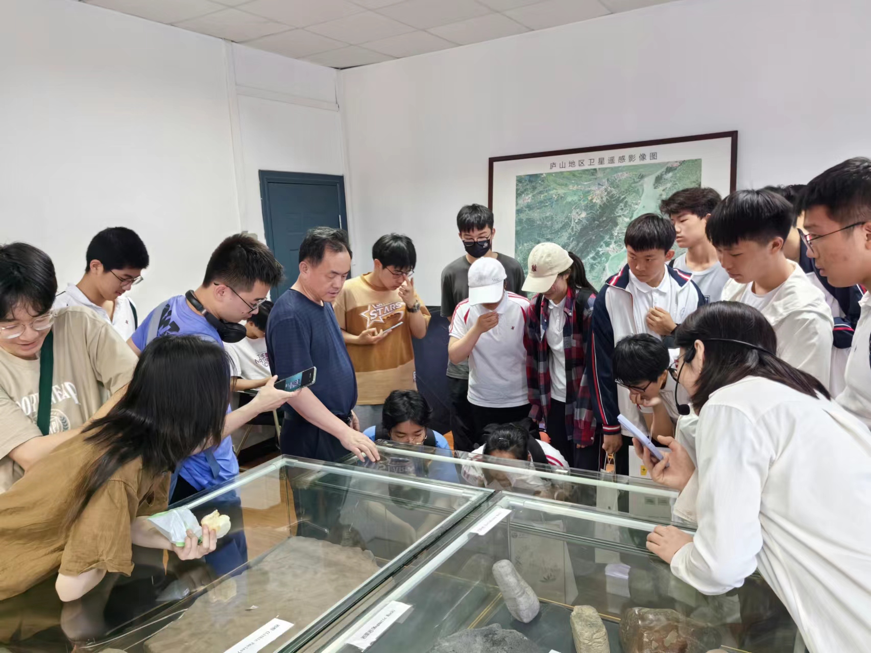 国家级庐山地理学实践教育基地展室:代侦勇老师十分负责且风趣地为同学们介绍了展柜中矿物、岩石、化石标本的基础知识。陈列在橱窗中的水晶、岩石是广袤大地里蕴藏着的无限财富,是澳门美高梅