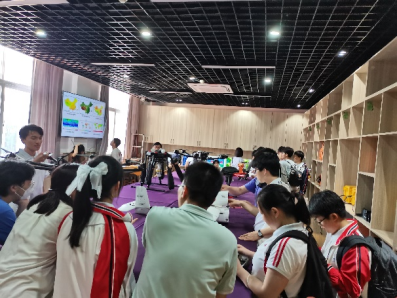 地理环境监测实验室:同学们对桌上摆放的六个环境监测无人机啧啧称奇。无人机的设计开发是地理信息科学的一大重要发展方向。搭载着各种高科技工具的无人机功能强大,能够进行测距、监测空气中污染物的含量等多项工作。电脑上显示着湖北省及周边省份的气象遥感图,通过各种可视化手段,清楚的展示一段时间内天气的变化。