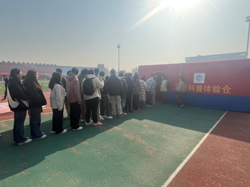 在“灭火演练模拟仓”,了解掌握不得在办公和宿舍区域使用的违规电器等,师生两人一组现场操作灭火器;在“逃生演练模拟仓”,十人一组在充烟环境中,按“弯腰低姿、湿毛巾捂口鼻、沿墙壁疏散”要领自主逃生,沉浸式体验掌握关键技能。