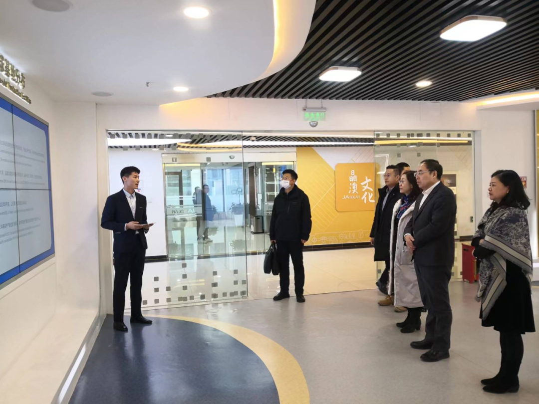 交流会开始前,马国伟副校长一行参观了晶澳科技展厅,详细了解了企业光伏组件、光伏新材料、系统产品及其产业链、全球的生产与研发基地布局等。
