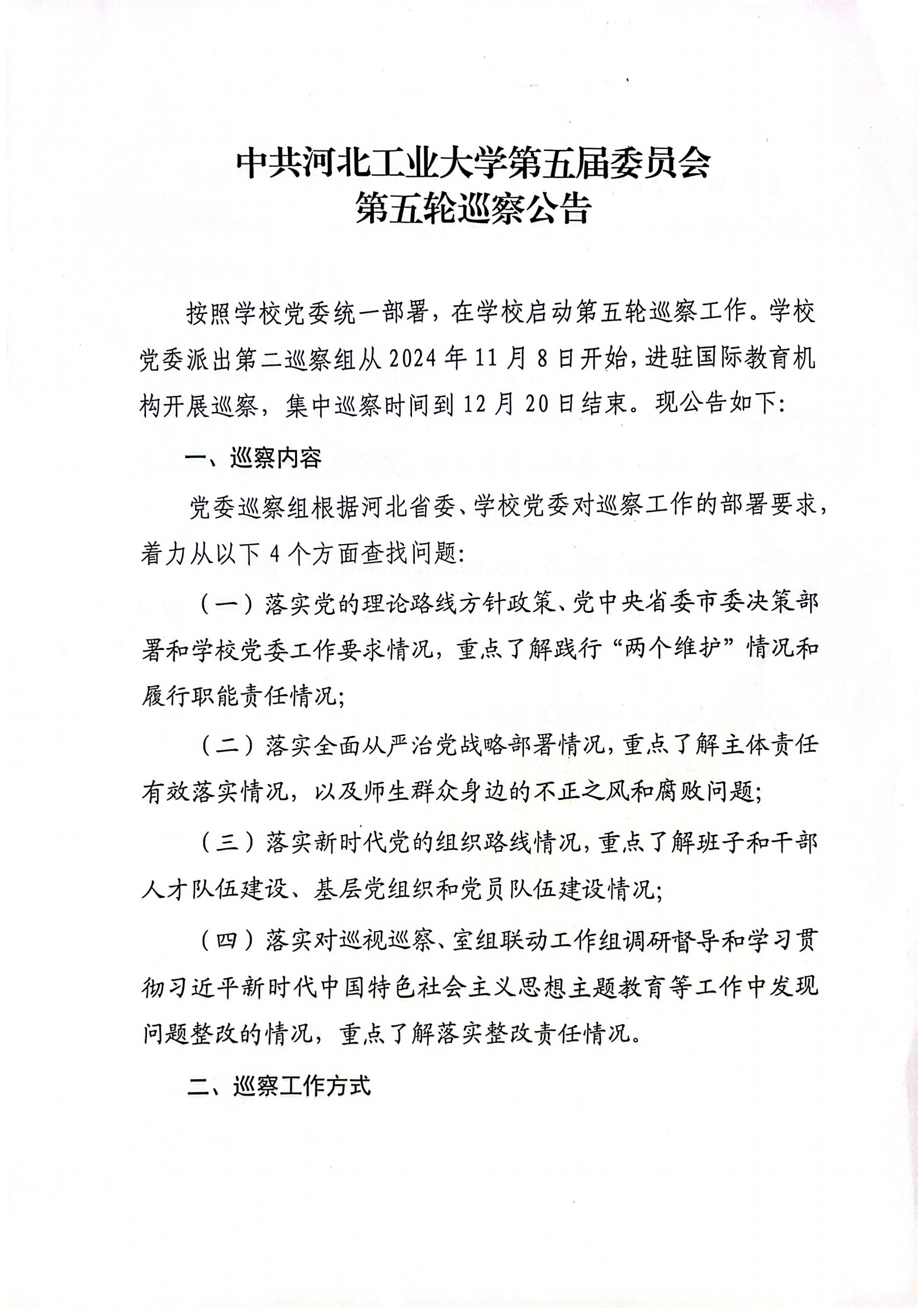 中共澳门美高梅 第五届委员会第五轮巡察公告