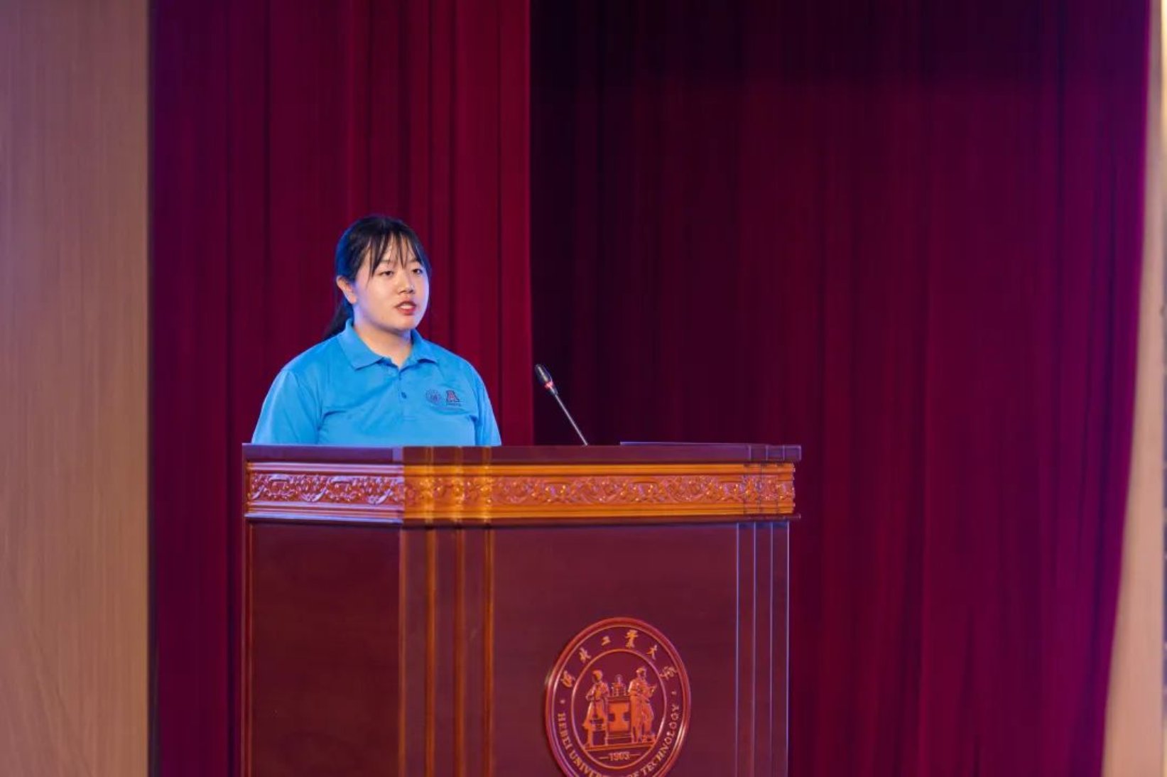 张新宁作为英语教师代表勉励同学们,要走出自己的舒适圈,学会独立面对困难;拓宽视野,学会团队协作,共同面对挑战,共同成长;从容面对人生的高低起伏,保持向上的人生态度,积极迎战生活中的困难。