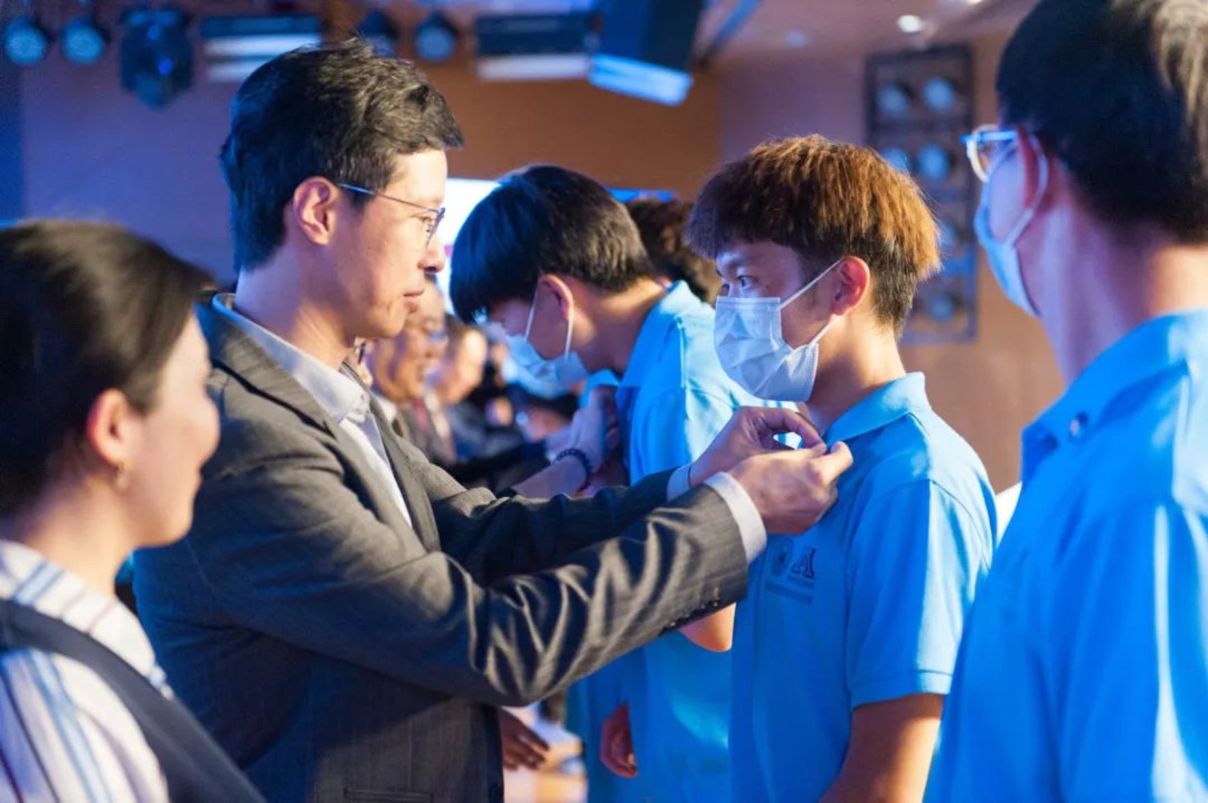 随后,196张笑脸出现在大屏幕上,逐渐汇聚成了大A标志,记录下了同学们初入校园的的青涩与懵懂,埋下一颗时间的种子,等待四年后的硕果累累。