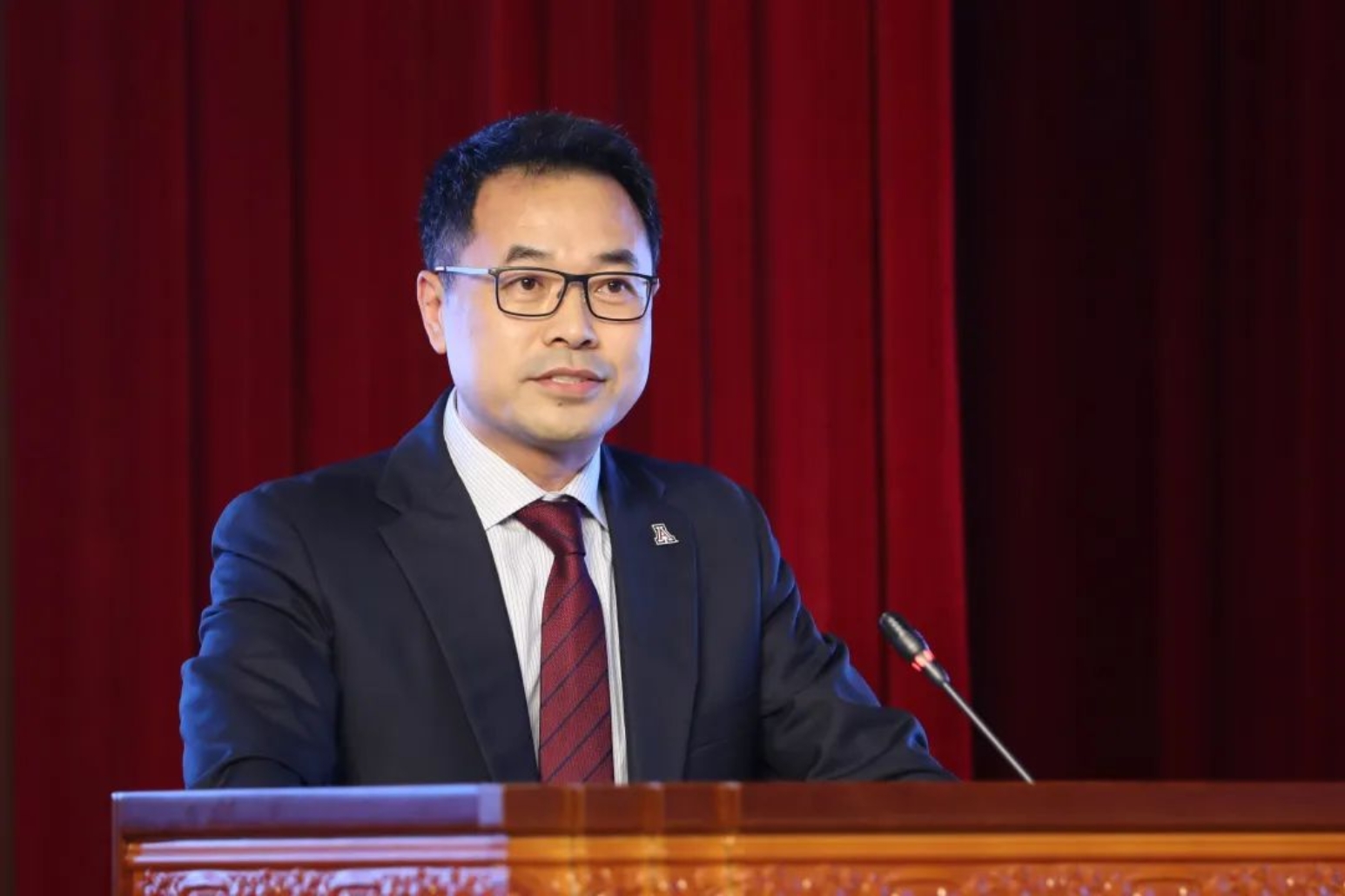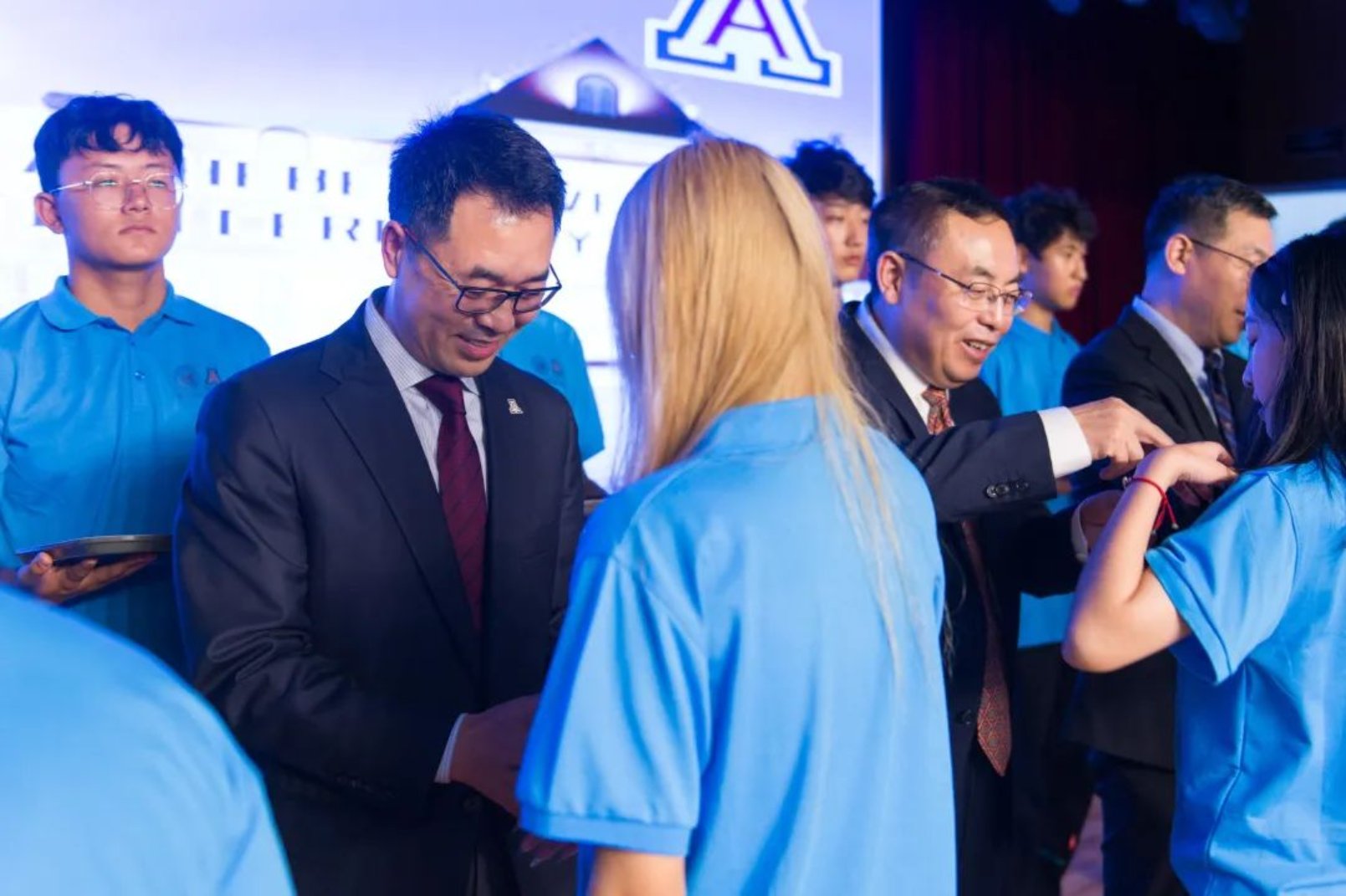 王永刚代表亚利桑那大学到场致辞。他指出,作为澳门美高梅 的学生,同学们将进行双语学习,为了获得两校学位,需要付出更多的努力,也将面对更多的困难。但四年大学时光里,全英文的教学环境不仅能帮助同学们实现多语言交流,还将培养同学们多文化、多视角思考问题的能力。他鼓励同学们挑战自我,不畏困难,发挥两校校训精神,勤慎公忠,全力以赴(Bear Down),通过四年时间,塑造更好的自己。