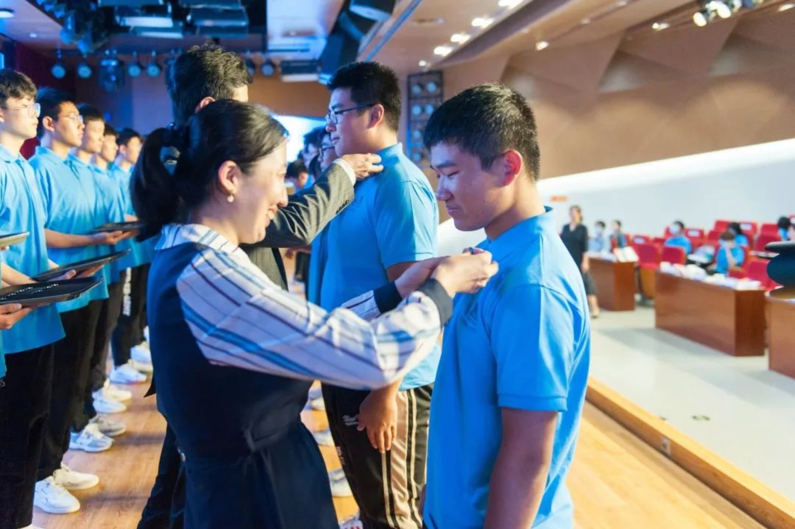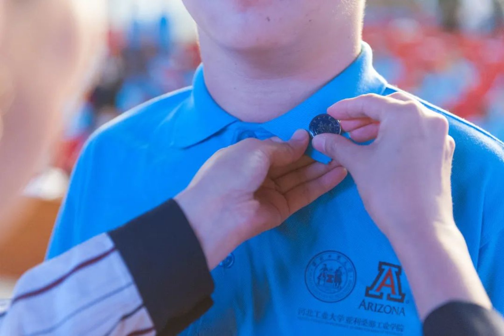 “铁锤铛铛,书声琅琅,勤慎公忠为理想;桃花灼灼,北运汤汤,工学并举薪火长”伴随着悠扬的校歌,老师们为全体新生一一佩戴校徽,同学们完成了成为一名“大学生”身份的蜕变。