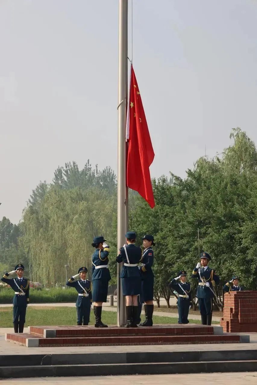 7时30分,升国旗仪式正式开始。旗台前,身姿挺拔的蓝天国旗护卫队气宇轩昂,迈着铿锵的步伐护送国旗到达升旗台。伴随着雄壮的国歌声,鲜艳的五星红旗冉冉升起,全体师生肃立,向国旗行注目礼,致以崇高的敬意。庄严而又神圣的升旗仪式,是国家和民族的荣誉象征,它让我们感受到祖国的力量、荣光和希望,也让我们更加热爱伟大祖国和珍惜美好生活。