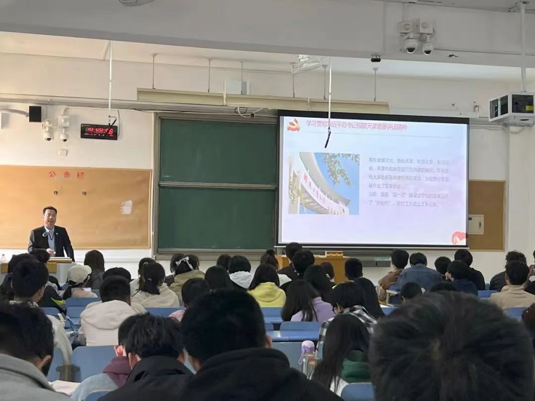 王老师同大家一起学习了习近平总书记重要讲话中的三个关键词“新质生产力”“社会主义现代化大都市”“京津冀协同发展”,并对学生干部在新时代、新征程中如何发挥青年力量与大家沟通交流。他寄语学生干部:要自强不息,在复兴伟业中涵养家国情怀;要高瞻远瞩,在披荆斩棘中提升人生格局;要知行合一,在担当重任中实现人生价值;要革故鼎新,在创新驱动中谋求卓越发展。