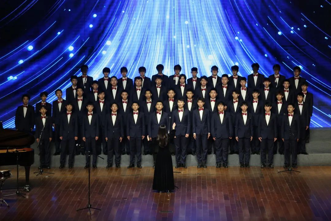余音未落,琴声陡转。一抹柔风化为号角,台上亚工学子顿时戎装戴甲,威风凛凛,歌声似冽冽西风,穿越时空,震响娄山关。军鼓响起,铿锵有力的歌声唱出了青春的“最强音”。
