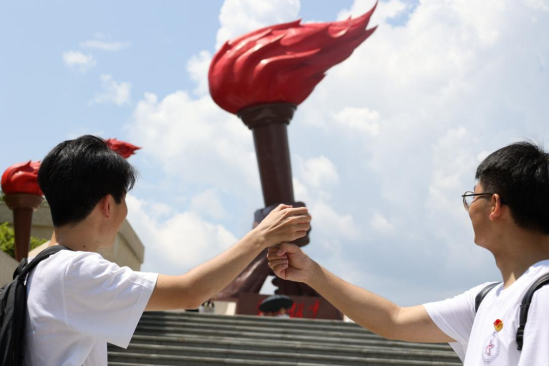 穿过五大哨口,先锋队来到了火炬广场。火炬广场树立着90个火炬,是对井冈山革命根据地创建90周年的一份特殊献礼。先锋队成员站在主题火炬之下,仰望着年轻有力的手臂从年迈沧桑的手中接过火炬的雕塑,更加坚定了亚工青年做好新时代“火炬手”的信念,以我们的实际行动勇敢肩负起时代赋予的使命和重任。
