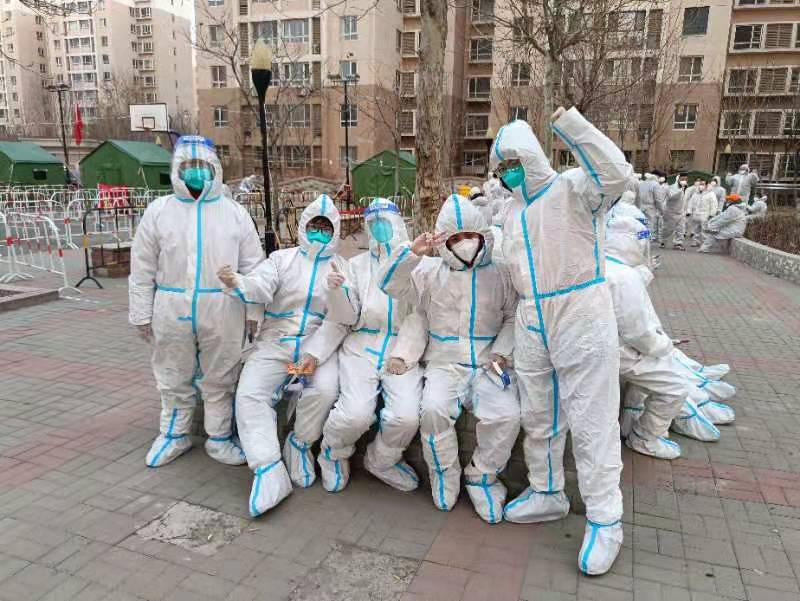 1月16日清晨,年仅18周岁还是大一新生的朱润芃背起行囊坐上大巴车前往战“疫”一线。时维腊月,严寒冷风中,他身着防护服,层层爬楼挨家挨户敲门提醒居民参加核酸检测,一一问询登记是否有行动不便的老人或残疾人需上门检测。因防护服不便穿脱,他连续数小时不吃不喝不上厕所,在核酸检测地点维持秩序和疏散人群。傍晚气温骤降,防护面罩上水汽冻结,眼前一片模糊,也没有影响他帮助超市清点货品和搬运物资的速度。当圆满完成七天的战“疫”任务后,朱润芃被问及是否辛苦时,他笑着回答说:“想到自己做的事情是那么有意义便不觉得辛苦。”